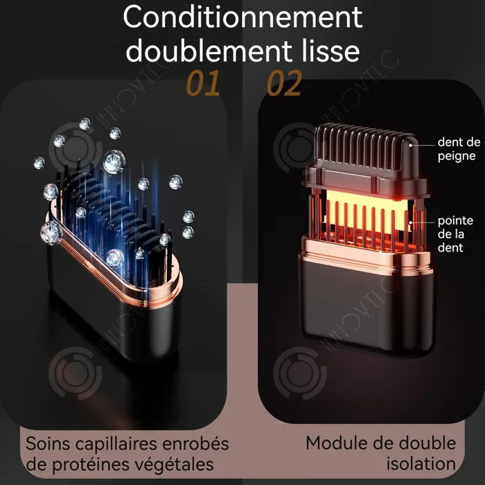Les cheveux sont nourris grâce aux protéines végétales et protégés par un module double isolation.